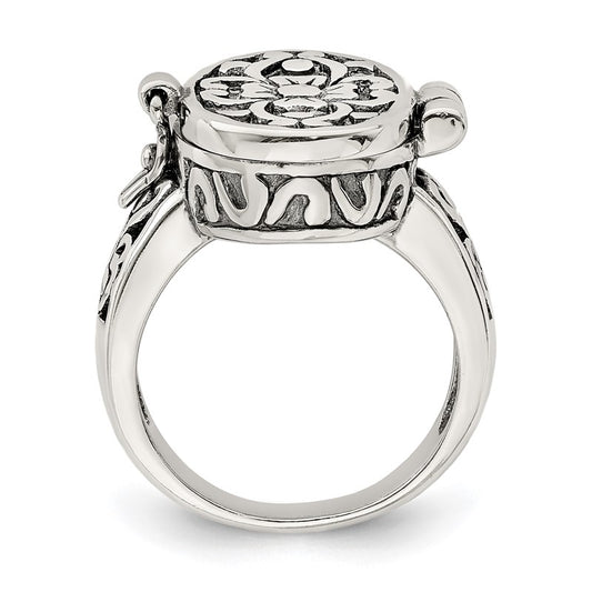 .925 Sterling Silver Women's Antiqued Oval Locket Ring, Size 7